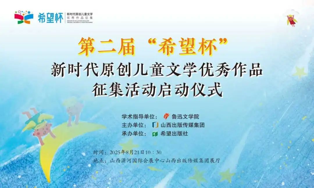 8月21日上午,由魯迅文學(xué)院擔(dān)任學(xué)術(shù)指導(dǎo),山西出版?zhèn)髅郊瘓F(tuán)主辦、希望出版社承辦的第二屆“希望杯”新時(shí)代原創(chuàng)兒童文學(xué)優(yōu)秀作品征集活動(dòng)啟動(dòng)儀式,在山西瀟河國(guó)際會(huì)展中心山西出版?zhèn)髅郊瘓F(tuán)展廳隆重舉行。本次活動(dòng)以習(xí)近平新時(shí)代中國(guó)特色社會(huì)主義思想為指導(dǎo),深入貫徹落實(shí)習(xí)近平文化思想,緊扣黨的二十大關(guān)于文化建設(shè)的戰(zhàn)略部署,圍繞建設(shè)社會(huì)主義文化強(qiáng)國(guó)的目標(biāo),圍繞“與時(shí)代呼應(yīng) 為兒童創(chuàng)作”的核心主題,旨在進(jìn)一步推動(dòng)原創(chuàng)兒童文學(xué)高質(zhì)量發(fā)展,鼓勵(lì)創(chuàng)作者書(shū)寫新時(shí)代少年兒童的生活與精神世界,講好中國(guó)故事,切實(shí)承擔(dān)“舉旗幟、聚民心、育新人、興文化、展形象”的使命任務(wù)。