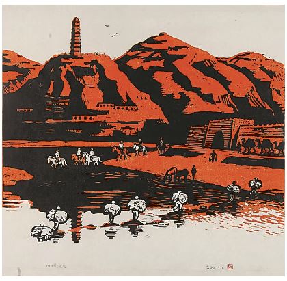 郝 斌:的確,古元延安時期的木刻創(chuàng)作呈現(xiàn)出獨特的抗戰(zhàn)藝術視角。他的作品通過對后方革命根據(jù)地生產(chǎn)建設、軍民生活等戰(zhàn)時日常的藝術再現(xiàn),豐富了抗戰(zhàn)主題的表現(xiàn)維度,拓展了我們對全民族抗戰(zhàn)歷史圖景的認知。您剛剛談到了古元后續(xù)相關創(chuàng)作,再將我們引向“頌黃河——古元與《黃河頌》組畫研究展”所展出古元晚年創(chuàng)作的大量延安、黃河主題作品。我注意到,古元在此系列創(chuàng)作中特別試圖去表現(xiàn)抗日戰(zhàn)爭時期的延安、黃河風景,而非直接描繪眼前的自然景觀。古元當時的創(chuàng)作追求是什么?