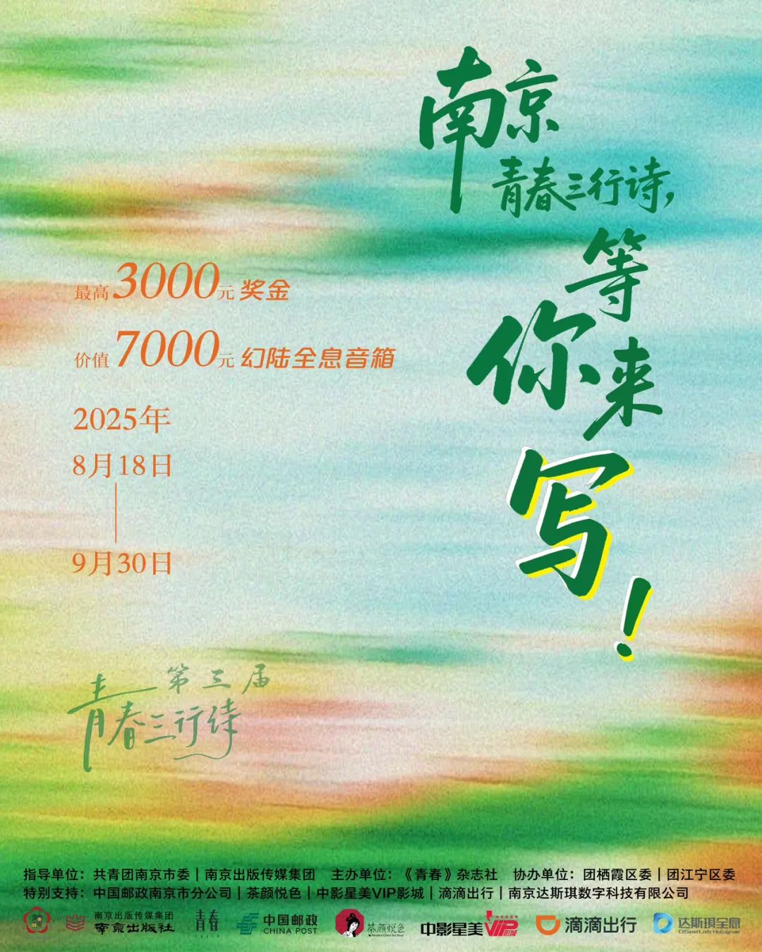我們邀請所有人,加入第三屆青春三行詩的創(chuàng)作大賽中,圍繞主題“我在南京的日子”書寫獨屬于你和南京的青春三行詩。