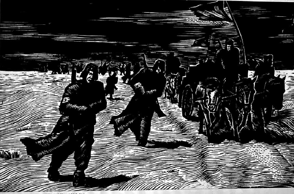 江豐《冰雪中的東北抗日義勇軍》(版畫(huà),1937年)