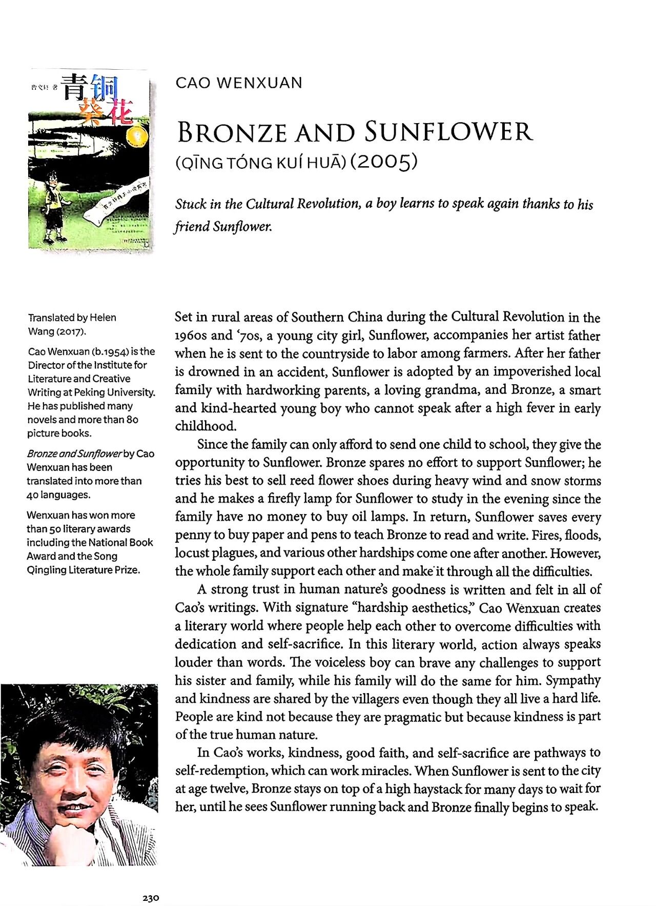 出版于2005年的《青銅葵花》講述了中國(guó)鄉(xiāng)村特殊年代下農(nóng)村男孩青銅與城市女孩葵花之間誠(chéng)摯純真的兄妹情誼,飽含著“詩(shī)意的苦難”與人性的溫情,《奇跡的世界》中該詞條的撰寫(xiě)者徐德榮教授這樣概括道:“在曹文軒的作品中,善良、誠(chéng)信與自我犧牲是通往自我救贖的途徑,能夠創(chuàng)造奇跡?!倍赀^(guò)去了,這份來(lái)自中國(guó)的“奇跡”正在世界范圍內(nèi)撫慰著越來(lái)越多的孩子,截至2025年8月,作品已被譯為26種語(yǔ)言,出版36個(gè)版本,從英,法,德,日,意大利語(yǔ)、阿拉伯語(yǔ)等各大語(yǔ)種,到斯瓦希里文、僧伽羅文等,全世界的孩子正在被蘆花鞋和冰項(xiàng)鏈的故事所深深感動(dòng)著。
