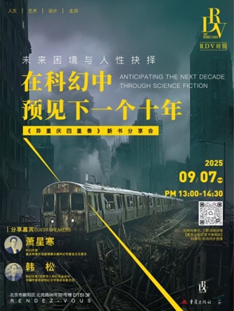 9月7日,科幻作家蕭星寒?dāng)y新作《異重慶四重奏》,與科幻文學(xué)領(lǐng)軍人物韓松在北京DT51 RENDEZ-VOUS書店展開深度對(duì)談,兩位重慶籍科幻作家以“未來困境與人性抉擇:在科幻中預(yù)見下一個(gè)十年”為主題,以線上和線下的方式帶領(lǐng)觀眾開啟了一場穿越現(xiàn)實(shí)與未來的思辨之旅。