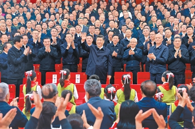 王滬寧、蔡奇、李干杰、何立峰、王小洪、雪克來提·扎克爾、諶貽琴、王東峰和劉振立,在新疆工作過的老同志,以及中央和國家機關有關部門負責同志、中央代表團全體成員一同觀看演出。
