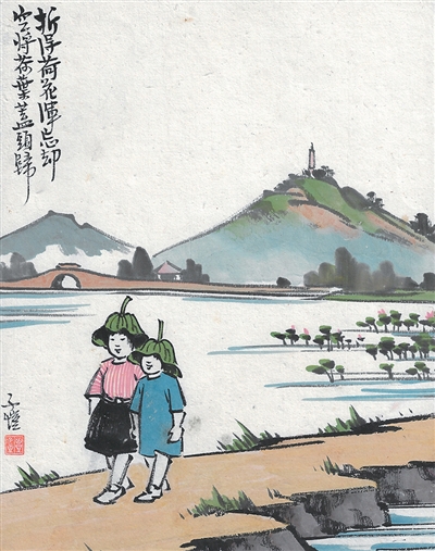 折得荷花渾忘卻 空將荷葉蓋頭歸(中國(guó)畫)