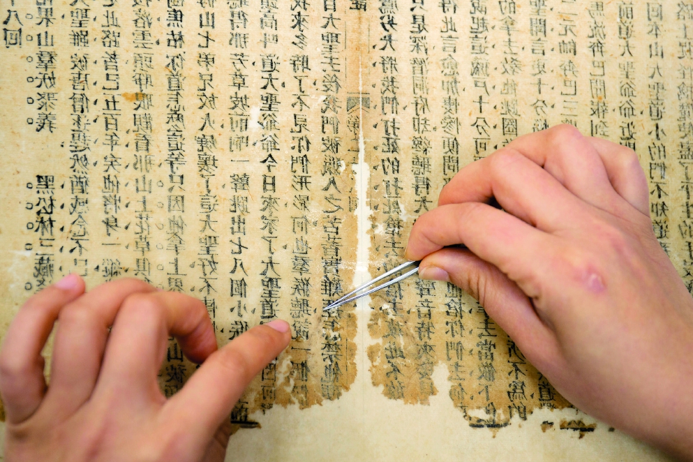 而全書最為動人的哲學(xué)升華,也正在于這“讓書舒服”的樸素理念。汪帆的老師胡玉清在修復(fù)敦煌卷子時,連一根古人用于縫合的麻繩都舍不得拆除,因為那是歷史的見證;在修復(fù)內(nèi)部看不見的“筒子葉”時,卻對一根纖維是否貼合都斤斤計較,因為“書知道”。英國修復(fù)師馬克·伯納德在修復(fù)《金剛經(jīng)》后,拒絕將其重新裱回卷軸形態(tài),而是選擇讓各葉平躺存放,他的理由同樣是:“我覺得讓它這樣平躺著,它會覺得比較舒服?!边@種將古籍視為有生命、有感受的存在的“物我觀”,超越了冷冰冰的技術(shù)主義,充滿了東方智慧中“格物致知”“天人合一”的人文關(guān)懷。它意味著修復(fù)的最高境界——不是炫技,而是克制;不是征服,而是共情;不是讓它煥然一新,而是讓它以最自在的狀態(tài)延續(xù)生命。