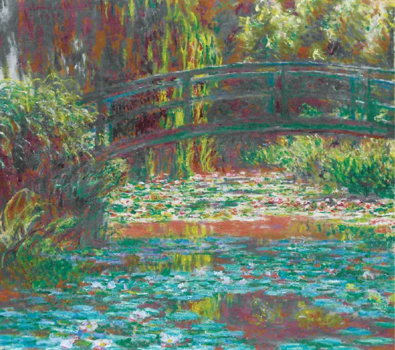 日本浮世繪對(duì)他的影響和啟發(fā)不僅體現(xiàn)在作品中,還體現(xiàn)在其晚年生活中。1883年5月初,莫奈和他的大家庭在吉維尼從當(dāng)?shù)匾晃坏刂髂抢镒饬艘凰孔雍突▓@。1890年11月,拜其畫(huà)商朋友杜朗·魯埃爾的成功市場(chǎng)運(yùn)營(yíng)所賜,莫奈已經(jīng)足夠富裕。他買(mǎi)下了這棟房子、周邊建筑、花園用地,甚至購(gòu)買(mǎi)了帶有水牧場(chǎng)的土地,開(kāi)始自己設(shè)計(jì)花園。除了是位功成名就的畫(huà)家,莫奈作為園藝師的身份也在其生前廣為人知。他筆下著名的睡蓮池、日本橋都是自己設(shè)計(jì)完成的,莫奈每天給他的園丁寫(xiě)指示精確的種植設(shè)計(jì)和布局,以及購(gòu)買(mǎi)花卉和收集植物學(xué)書(shū)籍的收據(jù)。隨著畫(huà)家財(cái)富的增長(zhǎng),“莫奈花園”也在不斷發(fā)展。即使生前雇了七個(gè)園丁幫他打理修建,莫奈仍然是花園的總園藝師。花園中靠近其居所的部分區(qū)域規(guī)劃得非常嚴(yán)謹(jǐn)合理,但以一條小徑分隔的睡蓮池部分則充滿著大自然的野趣。