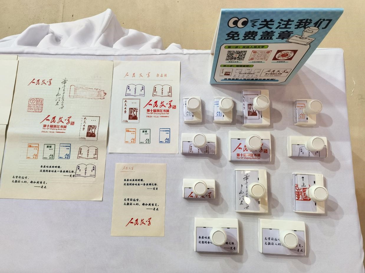 24日書展首日,經(jīng)過精心設計的毛主席創(chuàng)刊題詞冰箱貼、復刊號復刻本在書展現(xiàn)場首發(fā),與此前推出的具有紀念意義的創(chuàng)刊號復刻本一起,吸引一大批讀者駐足購買和收藏。為了有針對性地體現(xiàn)“浙”里元素,雜志社特意推出以浙江名家名作為內容的7枚浙江書展專屬系列印章,打卡讀者絡繹不絕,成為本屆書展亮點。書展期間正值10月25日創(chuàng)刊紀念日,雜志社精心設置祝福視頻錄制環(huán)節(jié),來自寧波、舟山等地的作家、讀者、老訂戶和大中小學生,同雜志社主編徐則臣、副主編陳濤及工作人員一起,共同為這本與新中國同齡的文學刊物送上寄語。
