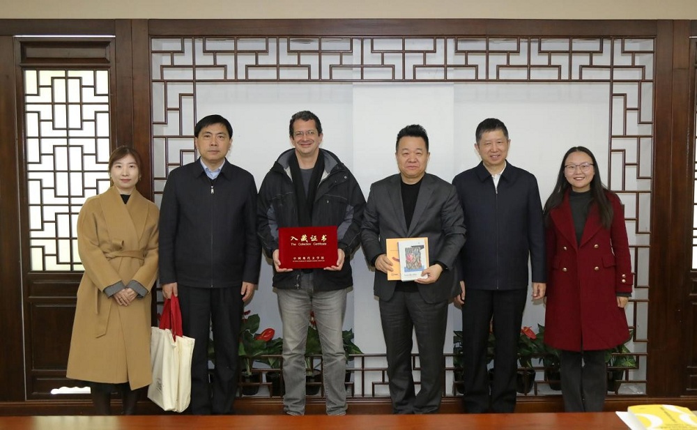 會(huì)后,里卡多參觀了中國(guó)現(xiàn)代文學(xué)館常設(shè)展及作家書(shū)房展,并向中國(guó)現(xiàn)代文學(xué)館贈(zèng)送個(gè)人著作。邱華棟向里卡多頒發(fā)中國(guó)現(xiàn)代文學(xué)館入藏證書(shū)。
