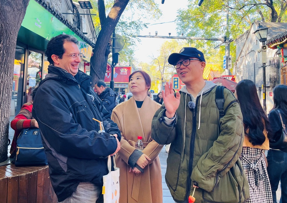 在京期間,北京市作協(xié)副主席、魯迅文學(xué)獎(jiǎng)得主石一楓與里卡多同游鐘鼓樓與南鑼鼓巷,錄制“作家?guī)憧幢本惫?jié)目,以輕松有趣的方式展示北京作為“千年古都”的深厚文化底蘊(yùn),以及作為“全國(guó)文化中心”所擁有的開(kāi)放、包容的人文氣質(zhì)。