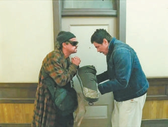 而受人敬仰、被眾人擁護(hù)的革命前輩鮑勃,已不是“躺平”而是“攤平”了。他轉(zhuǎn)移到巴克十字鎮(zhèn)避難十六載,革命斗志全無(wú),常年沉溺毒品和酒精,以至于連接頭暗號(hào)都忘干凈,逃亡路上只剩下倉(cāng)惶與失態(tài),甚至連真相都不配知曉,最終淪為導(dǎo)演的搞笑擔(dān)當(dāng)。