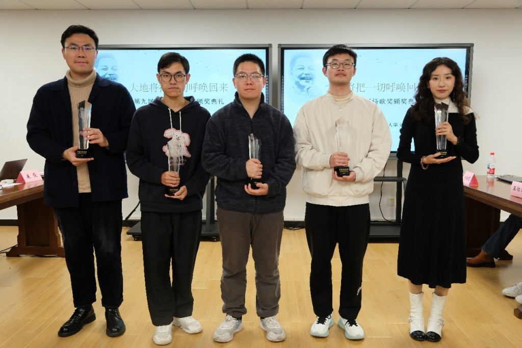 高校獎(jiǎng)獲得者合影,從左至右:伯竑橋、摩瑟西洛、胡了了、葉文宇、曲曉楠
