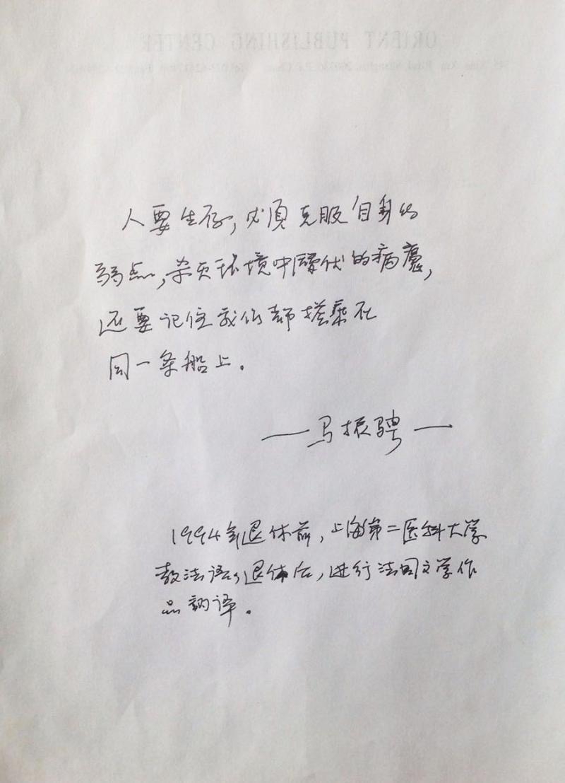 “1994年退休前,上海第二醫(yī)科大學(xué)教法語,退休后,進(jìn)行法語文學(xué)作品的翻譯?!边@是法語文學(xué)翻譯家馬振騁對自己的簡樸介紹。