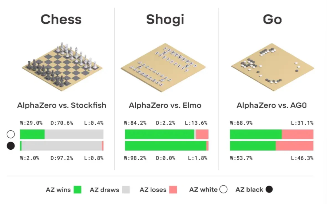 在國際象棋、將棋比賽中,AlphaZero輕易擊敗了人類世界冠軍。在圍棋比賽中,它也擊敗了人工智能AlphaGo Zero
