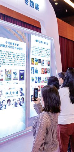 目前,中國網絡文學海外活躍用戶約2億人,覆蓋全球200多個國家和地區(qū);海外本土創(chuàng)作作品已超200萬部,海外創(chuàng)作生態(tài)已成規(guī)模。圖為觀眾參觀網文出海情況展板。資料圖片
