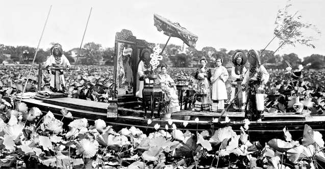慈禧曾在西苑中海(今北海公園附近)扮演觀音,并拍下相關(guān)照片。曾為慈禧太后御前女官的裕德齡,在《清宮二年記——清宮中的生活寫照》(云南人民出版社,1981年版)中回憶:光緒二十九年(1903)七月,慈禧一行在西苑乘船渡湖時,慈禧看到湖里荷花正盛開,就產(chǎn)生了拍攝扮演觀音照的想法:“我想扮做觀音來拍一張,叫兩個太監(jiān)扮我的侍者。必需的服裝我早就預(yù)備好了,有時候也穿的。碰到氣惱的事情,我就扮成觀音的樣子,似乎就覺得平靜起來……”